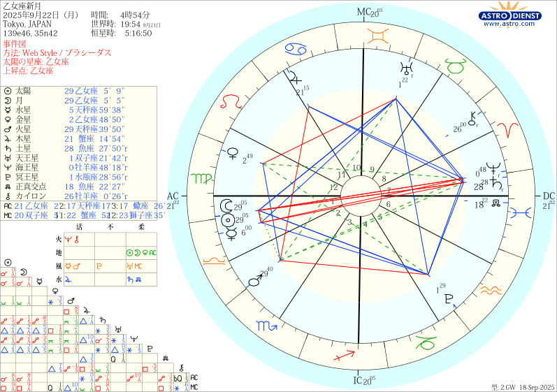 今回の乙女座新月は、ダブル新月で同じサインで2度起きます。1度目は8/23でした。これは約2〜3年に一度くらいのレア現象で、乙女座のテーマが、通常以上に強調されます。