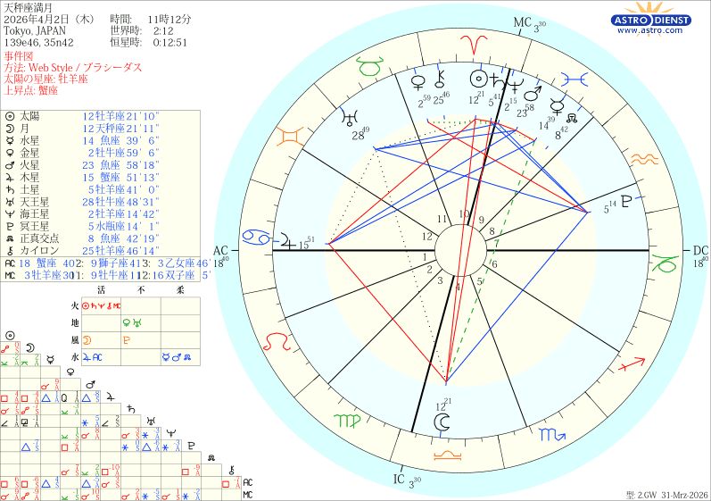 本日がお誕生日の方おめでとうございます。4/2天秤座満月をお届けします。