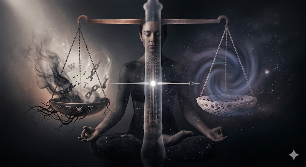 目を閉じ、天秤の支柱があなたの脊髄と重なるのを、静かに観想(視覚化)してください。左の皿には、あなたが手放した「かつての執着」を。 右の皿には、これから出会う「未知なる孤独」を。 そのどちらにも偏らず、ただ中央の静止した「点」に、あなたの意識を繋ぎ止めて、より豊かな人間関係と、環境を築くことができるようヴィジョンを描き、意識を集中して天秤座に繋がってみてください。